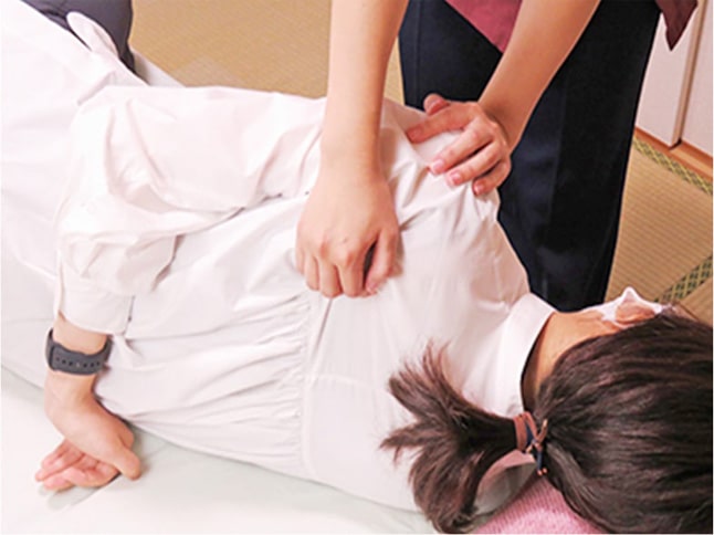 痛み・違和感のある動きや、身体の可動域が正常かどうかなどを確認していきます。 難しい動きはありませんのでご安心ください。